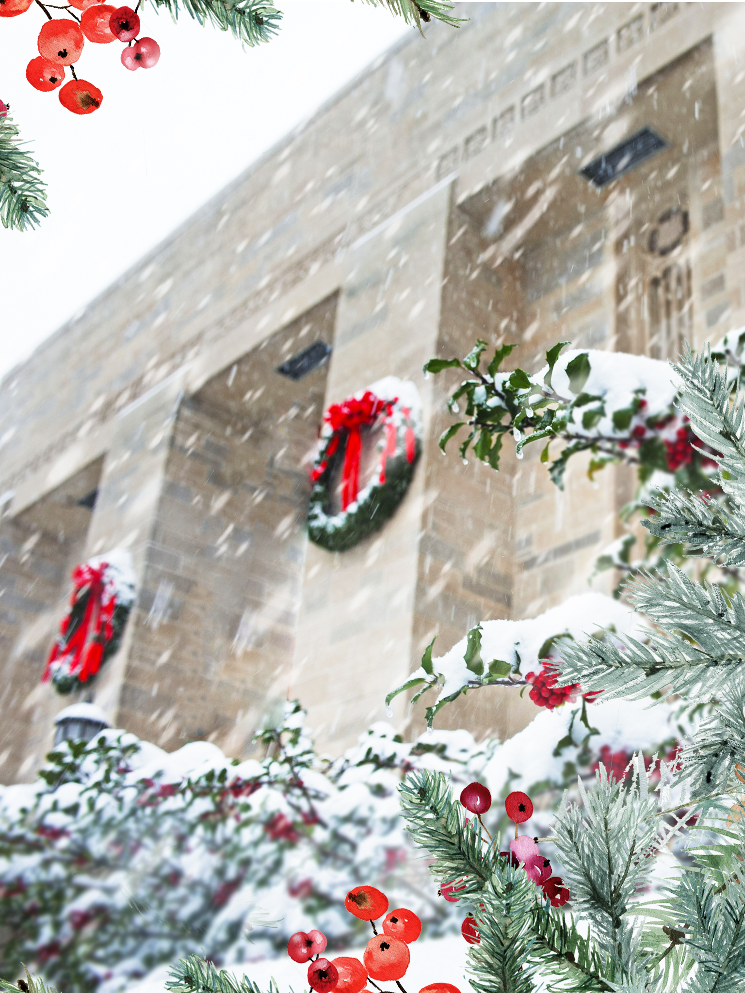 带着最温暖的冬季祝福,IU图书馆为您提供了艺术数字文件,可以下载并庆祝这个季节。用这些节日照片来装饰你的桌面、Zoom电话、社交媒体页面或iPad设备。图片来自IU图书馆的文件,收藏和档案,由前IU图书馆平面艺术家Gail Godwin应用的季节性框架。